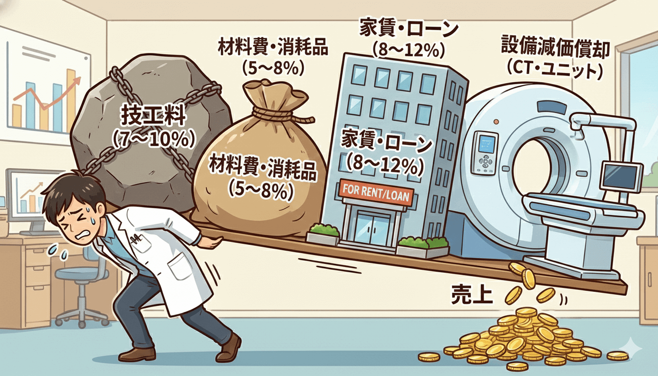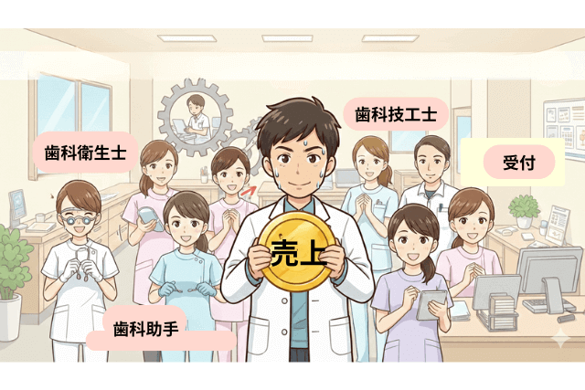 歯科医院は技工料・材料費・設備投資など、人以外の固定費が非常に重い業種です。人件費以外に30〜40%かかるため、一般企業と同じ感覚で給与配分をすると経営が成り立ちません。